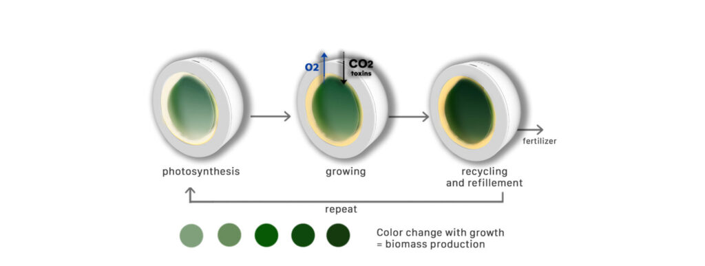 The unique species of algae and light manipulations can provide a self-sufficient system for each of us – air purification and improvement.